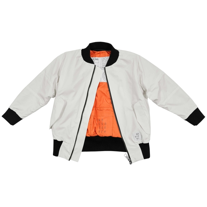 Lightweight bomber made of reflective material. Loose silhouette with elasticated cuffs on sleeves. Sturdy branded hardware, secure two-lock metal tractor zipper. Orange lining. Plenty of exterior and interior pockets with hidden magnets. Hidden pocket with GPS device and stitched NFC tag under logo.